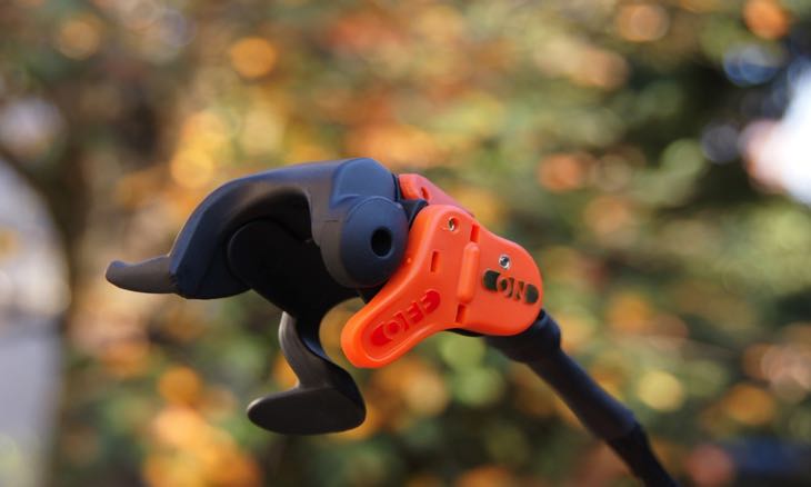 Der Fingergasgriff von Cameleon für Links- oder Rechtshänder (bis zu einer Seilzuglänge von 35 mm).